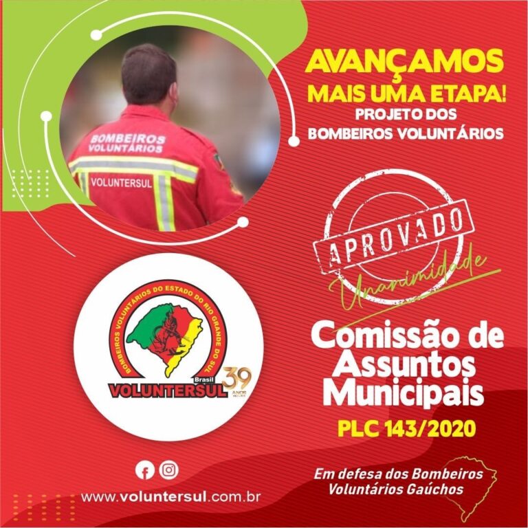 A Comissão de Assuntos Municipais da Assembleia Legislativa gaúcha aprovou, nessa terça-feira, 31, o parecer do Dirceu Franciscon (PTB) favorável ao Projeto de Lei Complementar 143/2020, que reconhece o funcionamento dos corpos de bombeiros voluntários no Rio Grande do Sul. A proposta, de autoria do deputado Elton Weber (PSB), é subscrita também por outros 37 parlamentares, de 14 partidos (um feito inédito na casa). O texto regulamenta o artigo 128 da Constituição Estadual, de 1989, na parte que possibilita aos municípios organizarem serviços civis e auxiliares de combate ao fogo, de prevenção de incêndios e de atividades de defesa civil.