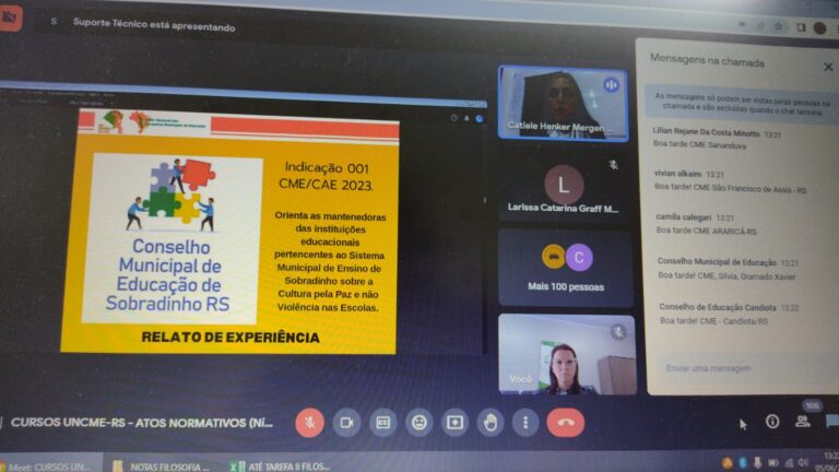 Os Conselhos Municipais de Educação que compõem a Regional AMCSERRA participaram nessa segunda-feira, 05, de curso, online, sobre Atos Normativos (Nível Intermediário), ministrado pela União Nacional dos Conselhos Municipais de Educação do Rio Grande do Sul, UNCME-RS. Durante todo o curso, os Conselheiros participantes foram orientados e aprenderam sobre os Atos Normativos que os Conselhos de Educação têm como função de criar aos seus Sistemas de Educação: Resoluções, Indicações e Pareceres.