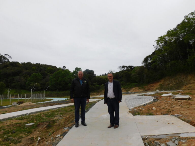 O prefeito Armando Mayerhofer e o vice-prefeito Ivan Trevisan estiveram visitando as obras de construção da praça que ficará ao lado da pista olímpica no Parque Municipal Marci Luiz Nardi – o Parque da Fejão. De acordo com o prefeito serão investidos R$ 372.566,93; sendo R$ 241.138,00 de emenda parlamentar e R$ 131.428,93 de contrapartida do município.