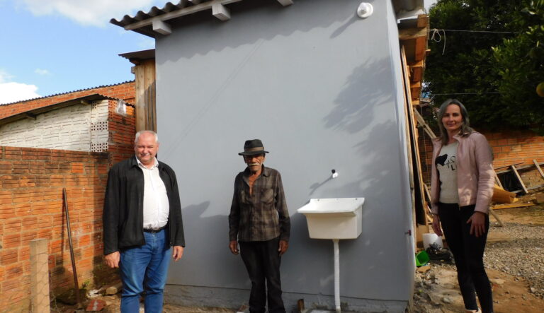 O prefeito Armando Mayerhofer e a secretária de Assistência Social, Patrícia Kegler, vistoriaram as obras dos módulos sanitários que estão sendo construídos em Sobradinho, uma vez que o município foi contemplado no Programa Nenhuma casa Sem Banheiro. Serão construídos, ao todo, 50 banheiros, beneficiando as famílias que foram selecionadas pela equipe técnica da Secretaria da Assistência Social, seguindo os critérios estabelecidos pelo Programa do Governo do Estado.