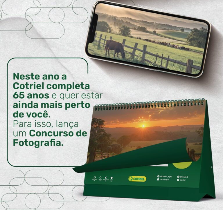 Uma comissão fará a avaliação. Caberá à comissão julgadora selecionar as 12 melhores fotografias que serão publicadas no calendário anual da cooperativa do ano de 2025 e, os três primeiros colocados serão premiados com 1 Cesta de Produtos Rio do Sol e Bom Grado cada uma. A inscrição vai até o dia 15 de setembro e a divulgação dos vencedores será feita através das redes sociais, site e programas de rádio da Cotriel, até o dia 14 de outubro. Dúvidas podem ser esclarecidas pelo e-mail: marketing@cotriel.com.br ou WhatsApp 54 9 9155-1182. Mais detalhes pelo site da Cotriel.