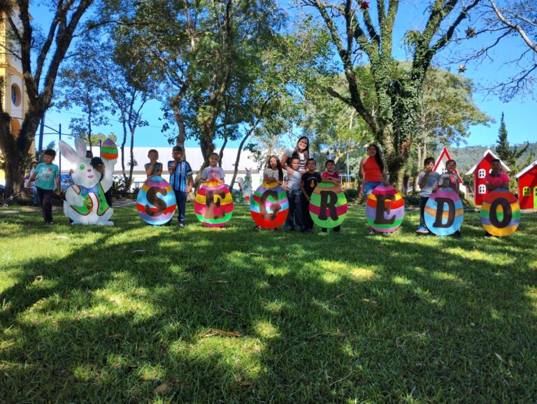 As crianças e adolescentes do Serviço de Convivência e Fortalecimento de Vínculos (SCFV), do CRAS, no município de Segredo, participaram de brincadeiras e outras atividades de integração na Praça 5 de Maio, no centro da cidade. Além disso, receberam um mimo de Páscoa produzido pela equipe do CRAS.