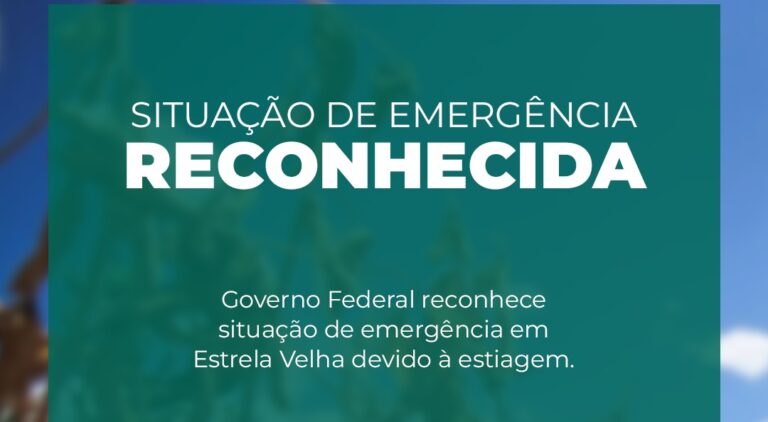 O Ministério da Integração e do Desenvolvimento Regional (MIDR), por meio da Defesa Civil Nacional, reconheceu oficialmente a situação de emergência em Estrela Velha, em razão da estiagem que atinge o município. A portaria nº 1.172, que confirma o reconhecimento, foi publicada no Diário Oficial da União, edição do dia 14 de abril. O decreto municipal que declarou a emergência havia sido publicado no dia 6 de fevereiro, diante dos impactos causados pela falta prolongada de chuvas. Desde então, a Administração Municipal vinha aguardando a homologação federal para avançar nas medidas de enfrentamento à crise.