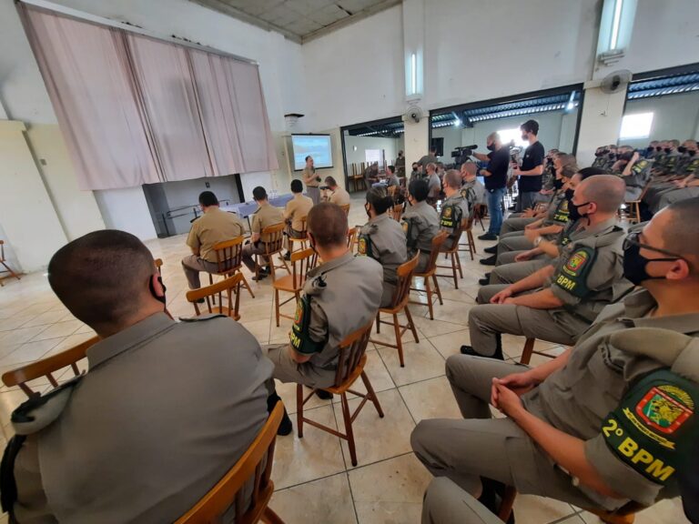 Na manhã desta quarta-feira, 1º, Alunos-Soldados do Curso Básico de Formação Policial Militar assistiram palestras ministradas pelo Diretor do Departamento de Informática (DI), coronel Adenir Brito da Silva e Corregedor-Geral da BM, coronel Robinson Vargas de Henrique. Na ocasião, foram recebidos pelo Comandante Regional do Vale do Rio Pardo, coronel Valmir José dos Reis, Comandante do 2°BPM, major Diogo Lopes, Comandante do Polo de Ensino, major Daniel Pinto Mello e demais Oficiais e Praças.