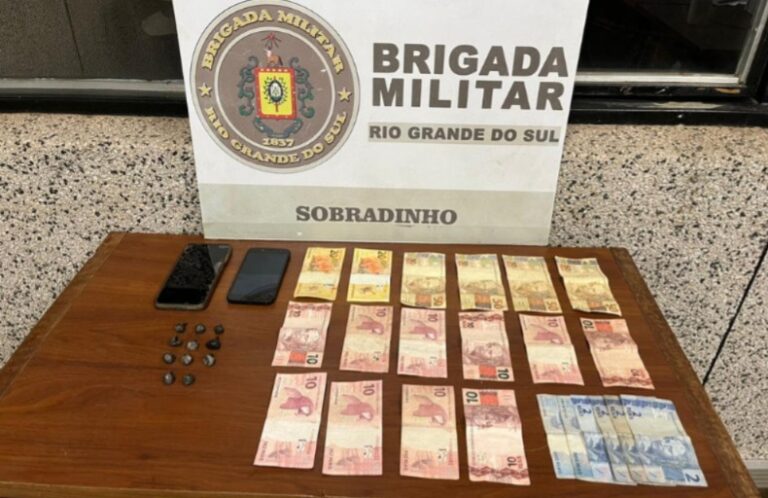A Brigada Militar de Sobradinho deteve na noite de sábado (15) dois homens por tráfico de drogas. Por volta das 23 horas, a guarnição avistou na Rua Padre Anchieta, no centro da cidade, um Corsa conduzido por um homem, já conhecido pelo tráfico no município. Após os militares tentarem fazer a abordagem, uma carteira de cigarros contendo 11 porções de cocaína foi jogada pela janela do veículo.