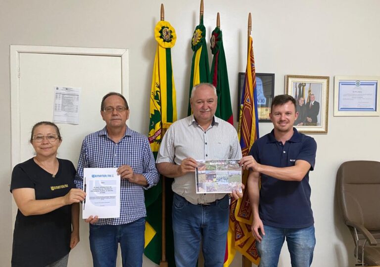 Na ocasião, eles entregaram o relatório das atividades desenvolvidas no município durante o ano de 2022, visando atender às prioridades e necessidades dos agricultores familiares e demais agricultores que buscam orientações junto ao escritório local. Além disso, foi entregue ao Executivo Municipal, o Plano Operativo do ano de 2023, com as atividades planejadas para o próximo ano. O prefeito Armando Mayerhofer reforçou a importância do trabalho da Emater no apoio e incentivo às agroindústrias, a Feira do Produtor e nos programas e políticas públicas desenvolvidas para o produtor rural.