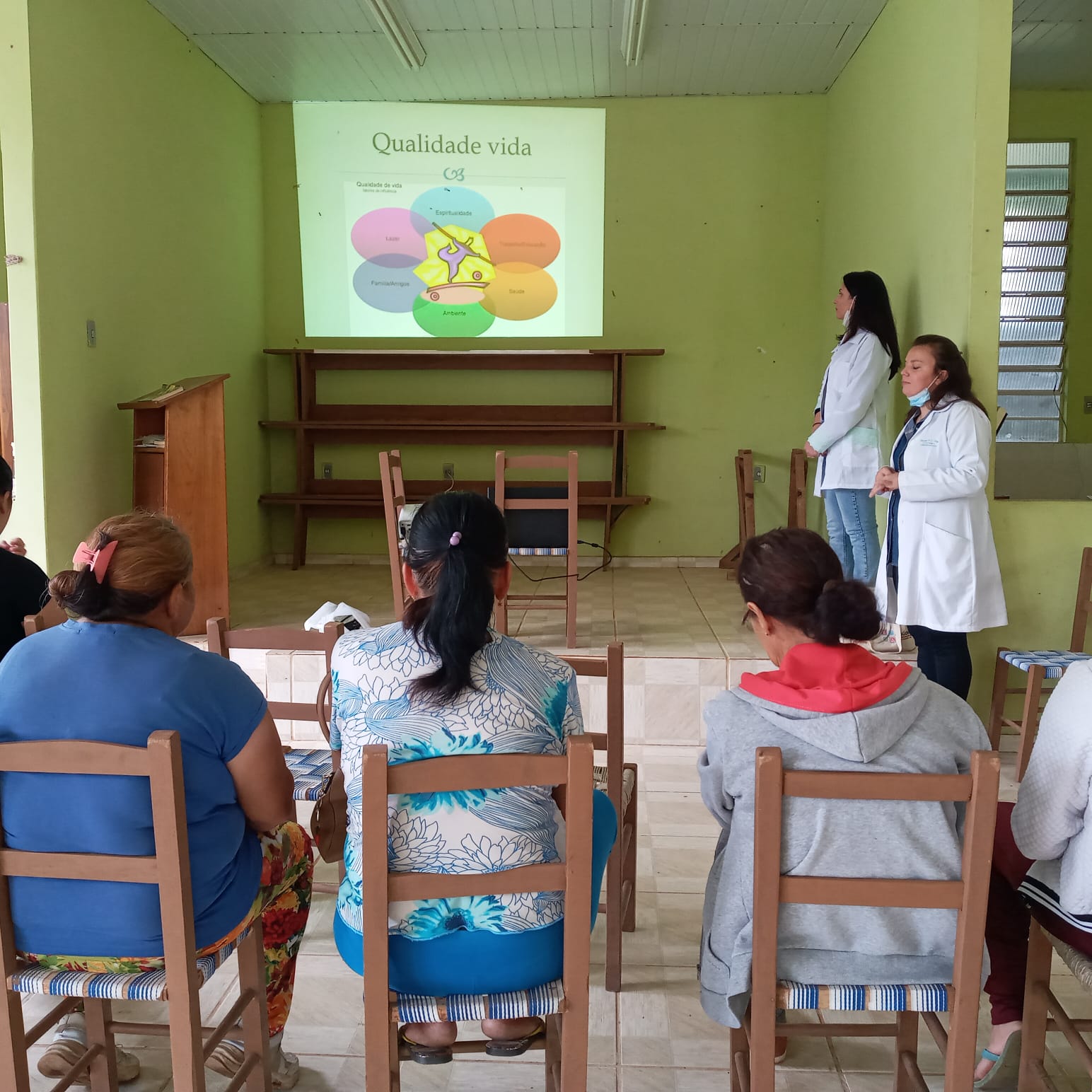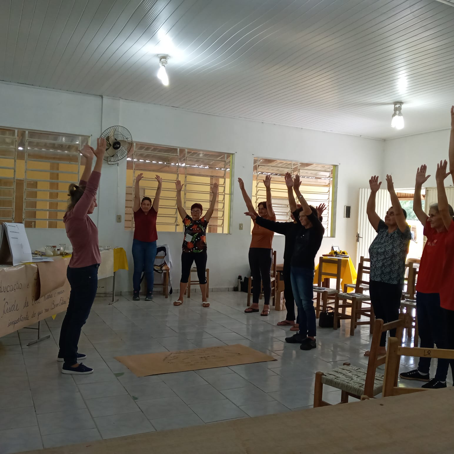 A atividade teve o objetivo de repassar aos participantes informações sobre os cuidados que devemos ter, principalmente em relação a saúde, como mudar de hábitos, ter uma alimentação mais saudável, praticar uma atividade física proporcionando o bem estar mental, o que muitas vezes, se torna necessário para elevar a imunidade a um bem estar físico, contribuindo assim, para o enfrentamento de intempéries do dia a dia. As palestras sobre Educação e Promoção de Saúde e Prevenção foram administradas pelas profissionais de Saúde Janete Carniel, Marília Binotto, Franciele Dalberto Claas e Suellen Miotto.