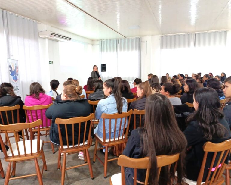 Simultaneamente, a equipe multidisciplinar da Secretaria, composta pela assistente social Graziele Busatto e pelas psicólogas Maiquiele da Silva Gomes e Karoline Matana, realizou uma formação com gestores escolares abordando as atribuições da equipe multidisciplinar.