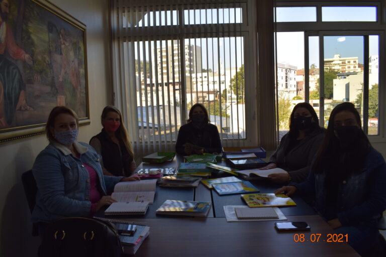 As supervisoras das EMEIs de Sobradinho estiveram reunidas nesta quinta-feira, (08) com a coordenadora das EMEIs, Marlete Zuchetto. Na oportunidade, trataram sobre os livros que as EMEIs irão trabalhar no próximo ano. Marlete passou a lista do site das editoras para que as supervisoras em conjunto com as profissionais de cada EMEI façam a escolha destes livros que serão disponibilizados através do PNLD (Programa Nacional do Livro Didático). Também trataram sobre a avaliação dos alunos que será feita na modalidade de parecer.