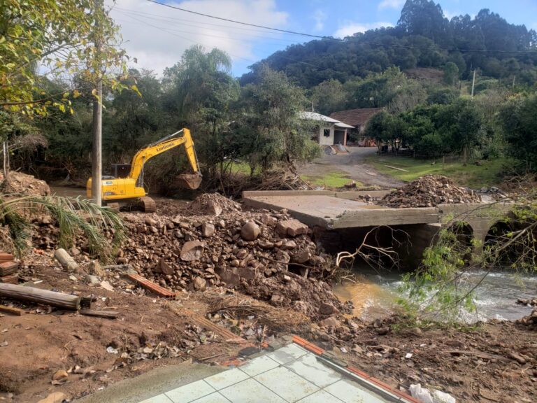 Nesta quarta-feira, 29, as equipes da Secretaria de Obras de Sobradinho estão trabalhando em vários locais, como na ponte do Bairro Rio Branco, próxima à família Maculan, e que dá acesso ao asfalto; num bueiro em Linha Herval; com o trator de esteira em Arroio Pilão e nas estradas de Linha Apolinário e Linha Carijinho.