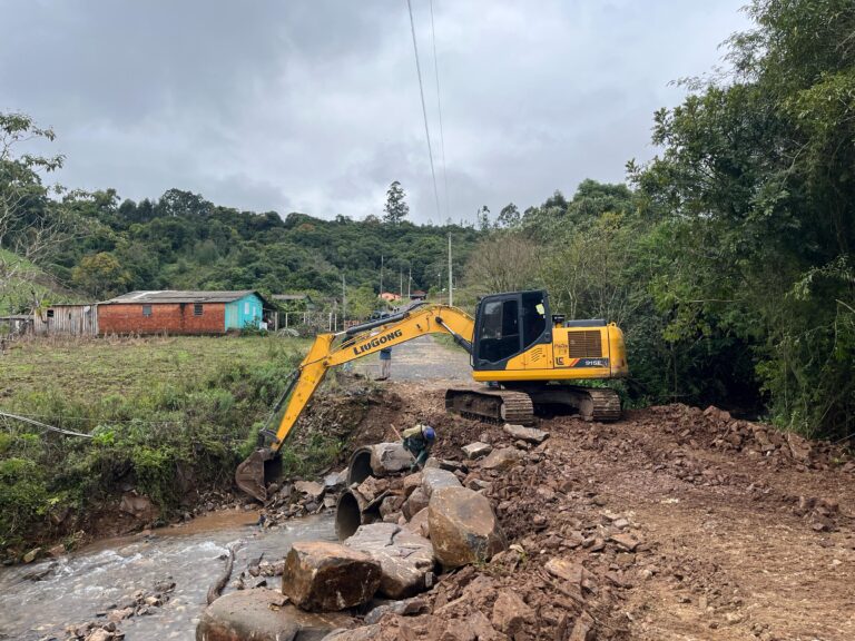 Já na localidade de Linha Apolinário, um bueiro foi destruído, deixando algumas famílias isoladas. A estrutura foi reconstruída no final de semana, e o acesso também já está liberado novamente. Além disso, diversos trechos de estradas rurais também sofreram danos, dificultando o deslocamento dos moradores. Os pontos mais críticos já receberam melhorias emergenciais, enquanto outras localidades seguem em fase de recuperação. O desvio provisório entre as localidades de Arroio Bonito e Linha Turvo — onde está em andamento a construção de uma nova ponte — também foi afetado pelas chuvas. As equipes já estão organizando os trabalhos para recuperação do acesso.
