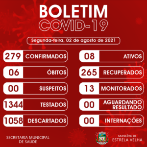 Atualmente, oito pacientes encontram-se com o vírus ativo. Outras 13 estão sendo monitoradas com síndrome gripal. Não há pessoas internadas, nem mesmo aguardando resultado de exames. Em Estrela Velha, seis pessoas perderam a vida em decorrência de complicações com a Covid-19.