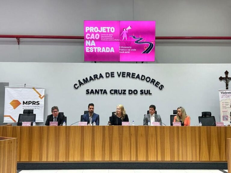 Membros da Rede de Apoio e Proteção Social de Estrela Velha participaram de uma capacitação na Câmara de Vereadores de Santa Cruz do Sul. O evento fez parte do projeto “CAO na Estrada”, promovido pelo Centro de Apoio Operacional de Enfrentamento à Violência contra a Mulher do Ministério Público (CAOEVCM), que tem como objetivo capacitar a rede de proteção à mulher em todo o Estado.