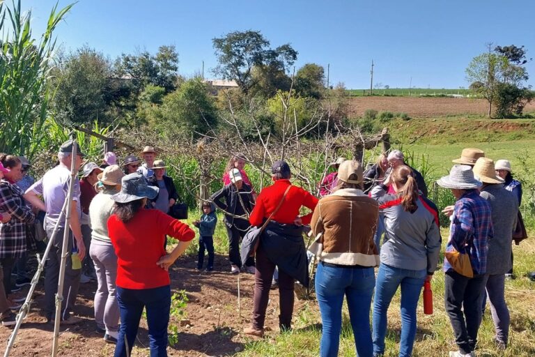 A Emater e a Secretaria Municipal de Agricultura de Estrela Velha promoveram uma tarde de campo, sobre fruticultura. A atividade ocorreu na propriedade de Celi Corrêa, em Rincão dos Corrêas. Na ocasião, houve demonstração de podas em videira, pessegueiro, pereira, marmelo, ameixeira, macieira e caquizeiro, bem como, orientações sobre o modo correto de plantio, controle de pragas e doenças e cuidados com o pomar.