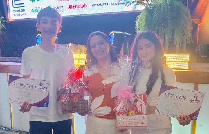 Valentina, de 13 anos e estudante do 7º ano do Ensino Fundamental, é líder estudantil e integrante do Conselho de Participação Estudantil, destacando-se pelas maiores médias da escola nos últimos trimestres. Alexandre, de 14 anos e estudante do 8º ano, é secretário-geral do Grêmio Estudantil e Líder Escolar, sendo reconhecido por seu comprometimento, desempenho exemplar e espírito de liderança. Também estiveram presentes prestigiando o evento a professora Lovani Sperafico e outros representantes da escola, celebrando os talentos e conquistas de nossos jovens líderes.
