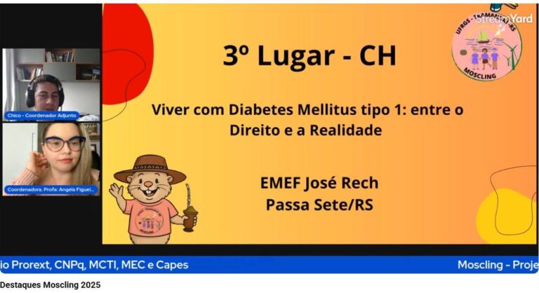 A Escola Municipal José Rech, da localidade de Pitingal, teve participação de destaque na V Mostra Científica do Litoral Norte Gaúcho (MosCLING 2025), realizada no Campus Litoral Norte da UFRGS, em Tramandaí, no início da semana. A estudante Rauani Eliza Galvão Busato conquistou o 3º lugar na mostra com o projeto “Viver com Diabetes Mellitus Tipo I: entre o Direito e a Realidade”, sob orientação da professora Juliana Schaefer.