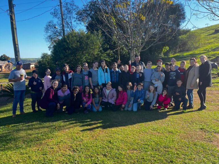 Os estudantes do 5º ano do Ensino Fundamental da Escola Municipal Álvaro Rodrigues Leitão participaram de uma experiência educativa fora da sala de aula, através uma visita à propriedade rural do casal Alexandre e Tatiane Kriese. A atividade ocorreu na última semana, e foi acompanhada pelas professoras Gisele Tuchtenhagen e Denizia Camargo, e pela nutricionista Sarita Müller, integrando as ações do Programa Saúde na Escola (PSE).