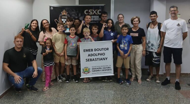 Alunos das Escolas Municipais de Sobradinho; Dr. Adolpho Sebastiany, do Bairro Vera Cruz, e Seomar Mainardi, do Bairro Rio Branco, participaram, a convite do Centro Serra Xadrez Clube de Sobradinho, do Campeonato de Xadrez realizado no último sábado, em Santa Cruz do Sul.
