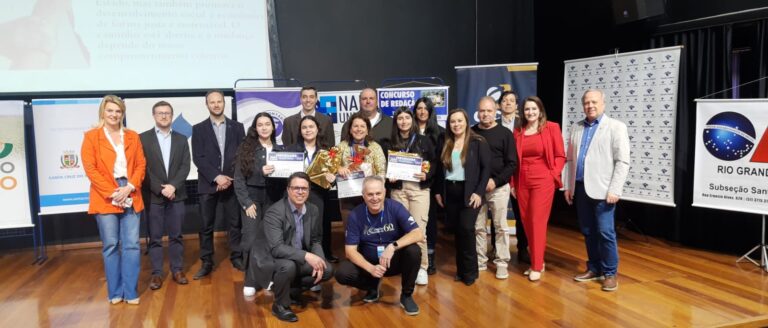 A professora orientadora Cleci Rohers da Silva também recebeu certificado, medalha e premiação e a Escola Borges de Medeiros ganhou aparelhos celulares. A Secretária Municipal de Educação, Cultura, Turismo e Desporto de Sobradinho, Cleura Minetto, e familiares das estudantes também prestigiaram o evento. O concurso de redação deste ano teve como temática “A Função Social do Tributo”. Além da premiação, a manhã foi contemplada com uma palestra sobre o tema, ministrada pelo auditor fiscal e delegado da Receita Federal do Brasil da Regional Novo Hamburgo, Eduardo Godoy Correa. Segundo um dos coordenadores da atividade, o chefe do Departamento de Gestão de Negócios e Comunicação da Unisc, professor Ricardo André Machado, 151 redações foram selecionadas, envolvendo 40 escolas e mais de 2.400 redações, pois cada escola organiza, previamente, as redações e encaminha as que se destacaram.