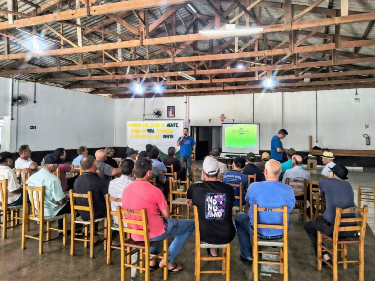 Produtores rurais do município participaram de um evento voltado à saúde masculina e ao bem-estar no salão da comunidade São Marcos, interior de Estrela Velha. A ação, promovida pela Secretaria Municipal da Saúde em parceria com o Sindicato dos Trabalhadores e Agricultores Familiares (STAF), integrou as atividades da campanha Novembro Azul, e contou com testes rápidos, aferição de pressão arterial e palestras sobre saúde física e mental.