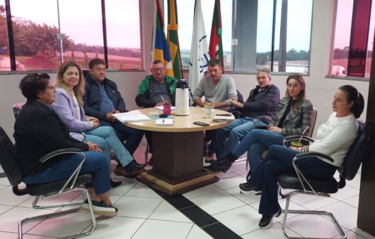 O prefeito de Estrela Velha, Alexander Castilhos, e o vice-prefeito Gilmar Steffanello se reuniram com os secretários municipais para discutir as ações de recuperação necessárias devido à situação de emergência decretada em 2 de maio.