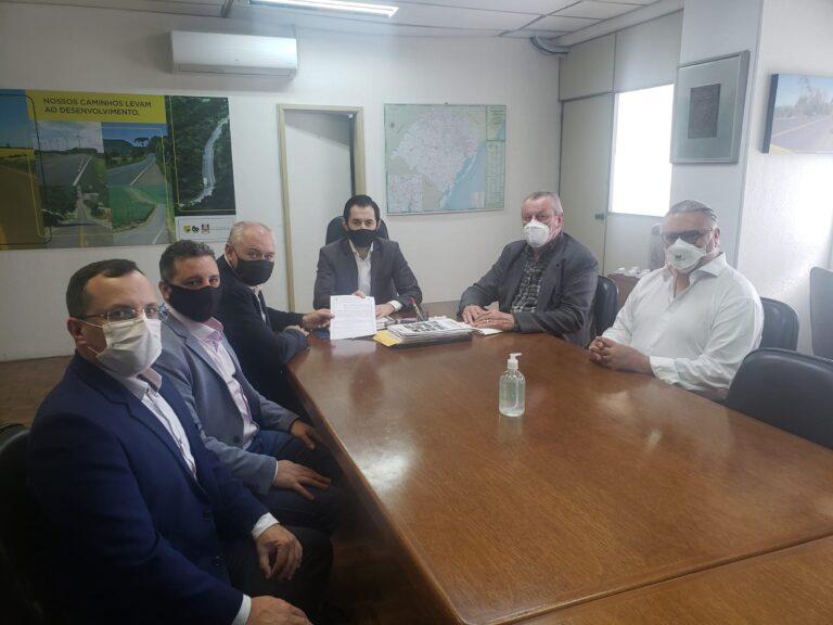 O prefeito de Sobradinho, Armando Mayerhofer, o secretário de Administração, Dilamar Silva, e o Assessor Jurídico Edenir Buligon, participaram de reunião no DAER em Porto Alegre. Na pauta, a recuperação do acesso à cidade, na saída para Arroio do Tigre, onde o local apresenta muitos buracos causando transtornos para os motoristas que transitam por ali.