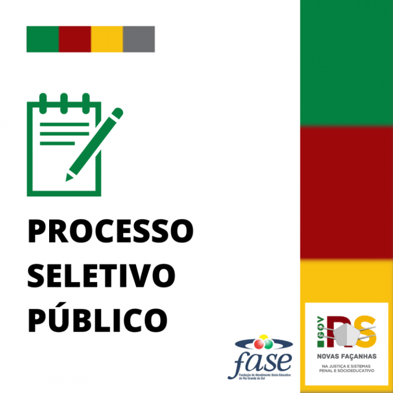Foi publicado no Diário Oficial do Estado, o edital que trata do processo seletivo público para a Fundação de Atendimento Sócio-Educativo (Fase) do Rio Grande do Sul. O processo seletivo, que será executado e coordenado pelo Instituto Mais de Gestão de Desenvolvimento Social, é destinado ao provimento de empregos vagos e dos que vagarem no prazo de validade do Processo Seletivo Público tanto na Capital quanto no interior (cidades de Novo Hamburgo, Caxias do Sul, Pelotas, Santa Maria, Passo Fundo, Santo Ângelo, Uruguaiana), bem como em novas unidades a serem inauguradas (tais como Viamão, Osório, Santa Cruz do Sul, entre outras) dentro do prazo de validade de dois anos, prorrogável uma única vez por igual período a contar da data da Homologação do Resultado Final.