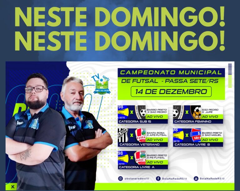 As comemorações pelos 30 anos de emancipação de Passa Sete seguem neste sábado (13), com a grande final do Torneio de Futsal – Taça Aniversário Passa Sete, a partir das 14h30, no Ginásio da Cristo Rei. A programação esportiva inclui um amistoso entre as categorias Sub-11 e Sub-13, seguido das partidas decisivas e da cerimônia de premiação.