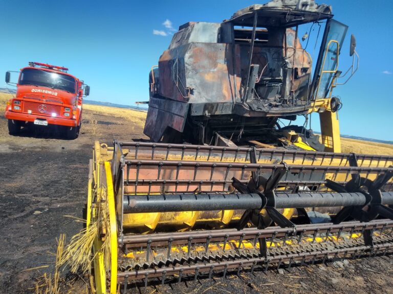 Os Bombeiros Voluntários de Arroio do Tigre foram acionados na tarde dessa quarta-feira, 16, para combater um incêndio em uma lavoura de trigo, em Rincão da Estrela, interior de Estrela Velha. O sinistro iniciou em uma colheitadeira, que estava colhendo o grão. O fogo, além do equipamento, consumiu cerca de cinco hectares da lavoura a ser colhida.