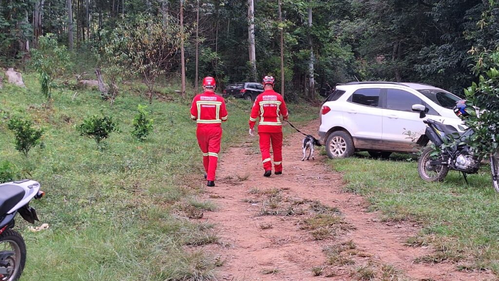 Os cães dos bombeiros voluntários utilizaram técnicas de rastreamento (mantrailing) e varredura de área por vento. Os animais indicaram um possível trajeto percorrido pela mulher, o que levou as equipes a intensificarem as buscas na região sinalizada.