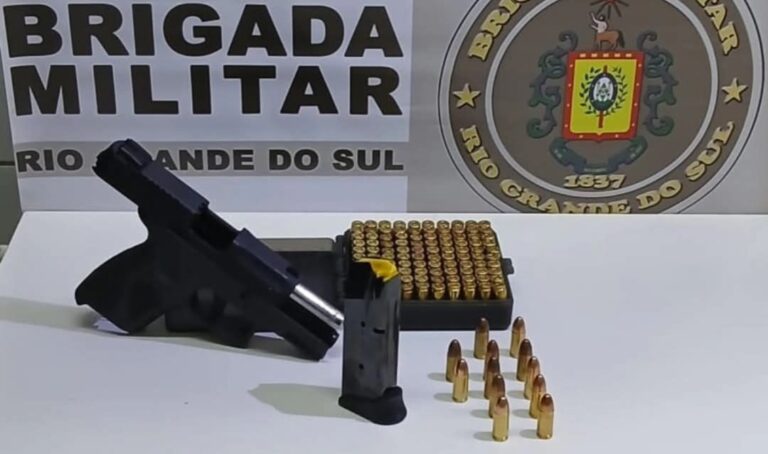 Policiais militares da Força Tática do 2º Batalhão Rodoviário da Brigada Militar, em fiscalização de trânsito e prevenção à criminalidade, na RSC-481, km 62, no município de Salto do Jacuí, abordaram uma Amarok no último sábado (12). Durante busca veicular, foi localizada uma pistola Taurus G2C, calibre 9 milímetros, com 12 munições intactas e mais 100 munições sobressalentes do mesmo calibre.