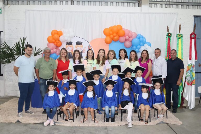 Alunos do Pré B, da EMEI Criança Feliz, participaram da solenidade formatura no Parque Municipal de Eventos de Lagoa Bonita do Sul. O ato contou com a presença do prefeito Luiz Francisco Fagundes; secretária da Educação, Cultura e Desporto, Simone Cláudia Bach Dal Ri, e a supervisora Aline Maria Rabuske.