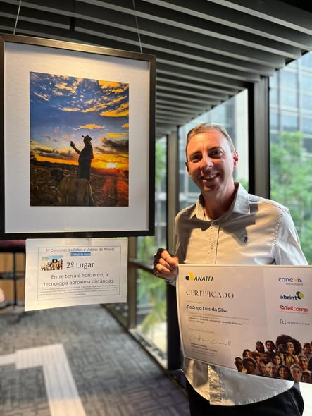 O talento do jovem Rodrigo Luis da Silva, do interior de Arroio do Tigre, ganhou destaque nacional ao conquistar o 2º lugar no 3º Concurso Nacional de Fotos e Vídeos da Anatel, realizado em Brasília (DF). Em meio a 560 fotografias inscritas de todas as regiões do país, a imagem de Rodrigo se destacou entre as melhores, evidenciando sua sensibilidade artística e olhar apurado para captar cenas que vão além do visual — transmitindo emoção e significado.