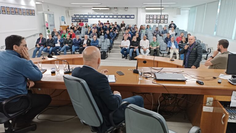 O Gabinete Itinerante do Ministério da Agricultura e Pecuária (MAPA), promoveu na tarde dessa quinta-feira (20), no Auditório da Câmara de Vereadores de Sobradinho, uma reunião com a presença de mais de 70 pessoas de vários municípios do Centro Serra, entre agentes públicos, entidades representantes do Setor, Emater e Sindicatos de vários municípios da região, Inspetoria Agropecuária e comunidade em geral. A reunião foi coordenada pelos representantes do MAPA Luiz Cláudio de Santana e Caruso- Coordenador Geral de Atração de Investimento e Cooperação Internacional da Secretaria de Comércio e Relações Internacionais e Coordenador do Gabinete Itinerante e José Cléber Dias de Souza – Superintendente do Ministério da Agricultura e Pecuária no Rio Grande Sul, juntamente com uma grande equipe de profissionais.