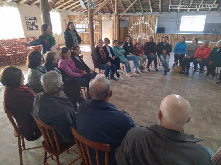 A Secretaria Municipal de Assistência Social de Segredo, através do CRAS Pensando no Amanhã, participou do encontro mensal do Grupo de Terceira Idade Sempre Sorrindo da Sede no CTG Candeeiro Serrano.