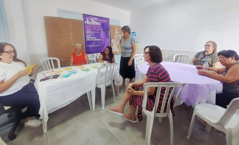 O grupo de saúde mental Calêndula promoveu um encontro especial em alusão ao Fevereiro Roxo, com a participação da assistente social Silvana Soares e da arteterapeuta Jocelaine Lazzari. A atividade abordou a conscientização sobre lúpus, Alzheimer e fibromialgia, destacando as “dores invisíveis”, a importância do diagnóstico precoce e o apoio emocional no tratamento.