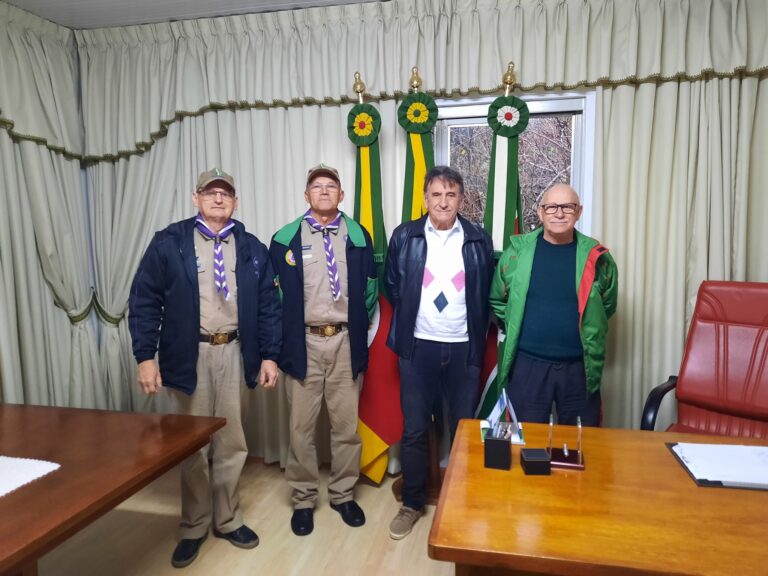 Integrantes do Grupo Escoteiro Aimoré de Sobradinho estiveram reunidos com o prefeito de Ibarama, Valmor Mattana. A entidade foi representada pelo presidente Elui Luiz Linassi e os chefes Beno Brand e Gerson Schirmer. Eles convidaram o prefeito para participar da abertura do 1º Acampamento de Integração Escoteira Brasil-Uruguai, que será promovido em Ibarama nos dias 25 e 26 desse mês.