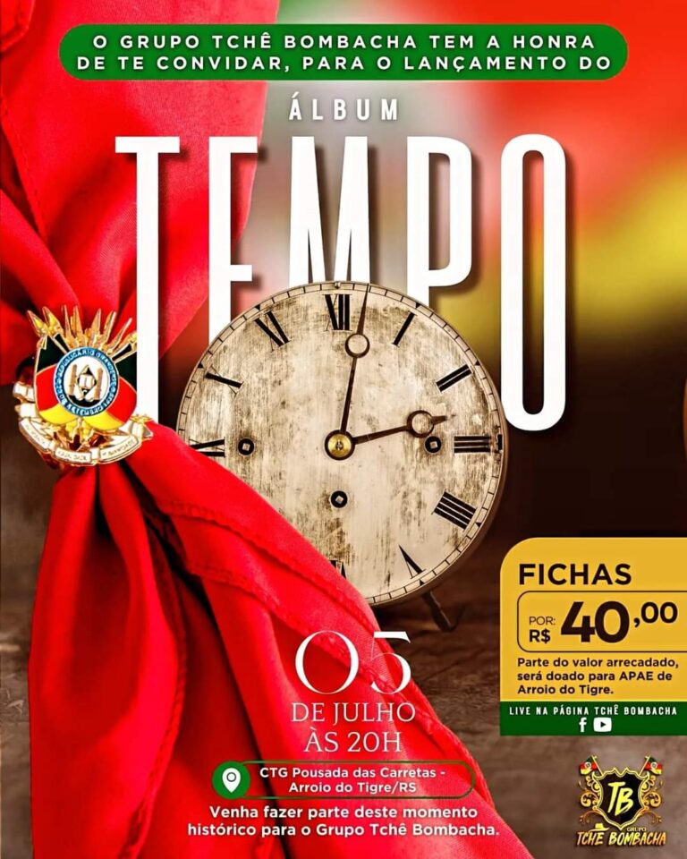 O primeiro álbum do Grupo Tchê Bombacha, intitulado “Tempo”, será lançado nesta sexta-feira (05), a partir das 20 horas, durante uma live, no CTG Pousada das Carretas, em Arroio do Tigre. Falando para a reportagem das Rádios Sobradinho AM e Jacuí FM, o vocalista e acordeonista do grupo, Marcelo Rauber, adiantou que o álbum contém 11 músicas autorais. Já o compositor e responsável pela música que dá nome ao álbum, Cleo Oliveira explicou que a história da música “Tempo”, que dá nome ao álbum, foi escrita durante a pandemia e traz uma mensagem de reflexão.