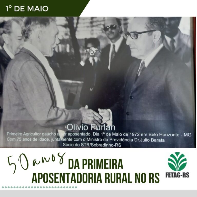 Dia 1º de maio de 1972 o primeiro agricultor recebeu seu benefício previdenciário. Olivio Furlan, residente na época no município de Sobradinho, recebeu em Belo Horizonte das mãos do Ministro da Previdência, Júlio Barata seu primeiro salário como aposentado rural.
