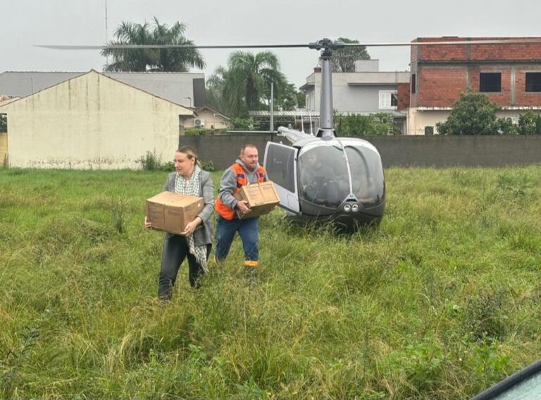 Um helicóptero pertencente ao empresário Jonas Michelon, de Sobradinho, está transportando medicamentos e pessoas que necessitam atendimento médico entre Santa Cruz do Sul, Candelária e Sinimbu. O trânsito entre estas cidades está bloqueado devido à queda de pontes na RSC 287.