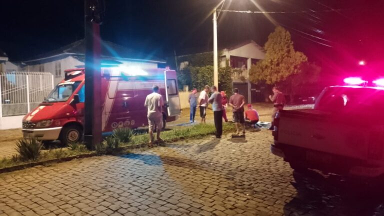 Os Bombeiros Voluntários foram acionados e encontraram o homem caído na Avenida Fernando Ferrari, com cortes e sangramentos no braço, na mão e um hematoma na cabeça. As hemorragias foram controladas pela equipe de socorro, e ele foi encaminhado ao Hospital São João Evangelista, onde permanece internado em estado estável.