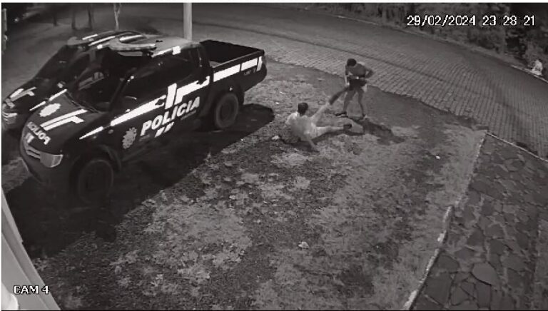 A Polícia Civil de Sobradinho prendeu em flagrante um assaltante de 36 anos, que roubou a carteira, documentos e um telefone celular de um homem, na noite quinta-feira (29), por volta das 23 horas, no pátio da própria Delegacia. Câmeras de segurança flagraram a ação criminosa, em que a vítima foi agredida com chutes e socos e teve inclusive sua própria calça levada.