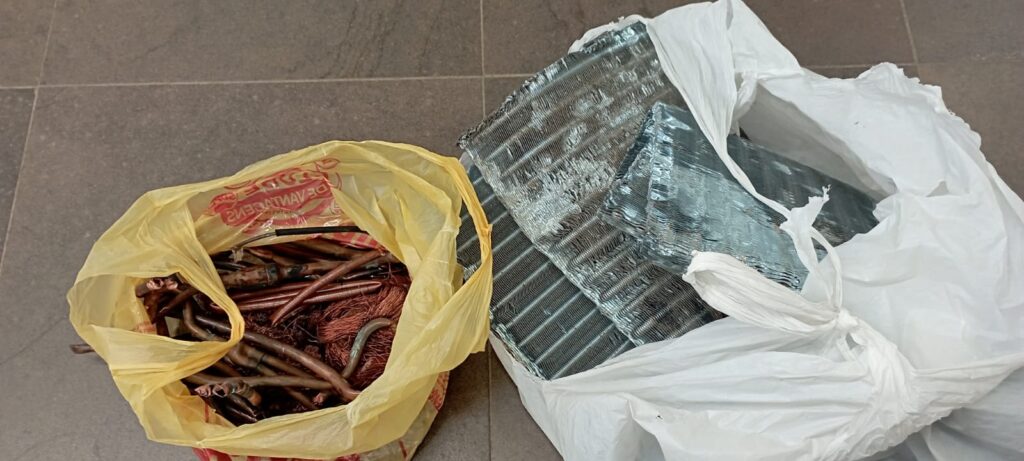 Os policiais se deslocaram até o local, fizeram a abordagem e durante a ação, o homem confessou o furto. Ele entregou a condensadora, que já estava desmontada, com as peças separadas em cobre e alumínio.