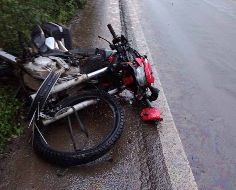Um acidente de trânsito resultou na morte de um homem, no final da tarde desta sexta-feira (24), em Pitingal – Passa Sete. A colisão envolveu uma motocicleta Honda XRE e um VW Gol. Com o impacto, o piloto da motocicleta foi arremessado. Ele não resistiu aos ferimentos e faleceu no local do acidente. A vítima foi identificada como Clóvis Júnior Raminelli. A Brigada Militar de Passa Sete atende à ocorrência e faz o controle do trânsito no local.