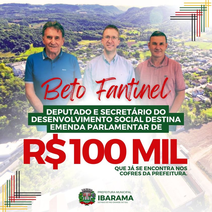 Segundo Lademir Oliveira, o recurso é destinado para a Secretaria Municipal da Saúde na modalidade de “custeio”, e deverá ser usado na implantação de uma saída de emergência no Posto de Saúde de Ibarama, bem como, no pagamento de outras despesas exclusivas da área da saúde. Além desta emenda, o município recebeu mais R$ 100.000,00 destinados pelo deputado estadual e atual secretário do Desenvolvimento Social, Beto Fantinel, do MDB. O recurso também será investido na Secretaria Municipal de Saúde.