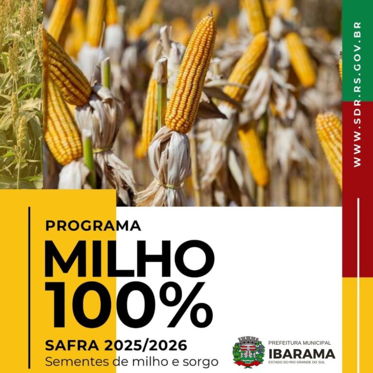 A Secretaria Municipal da Agricultura, Fomento Econômico e Meio Ambiente está recebendo encomendas de sementes de milho para a safra 2025/2026. Os produtores interessados devem comparecer pessoalmente na Secretaria, munidos do bloco de produtor rural. O atendimento é feito durante todos os dias úteis no horário de expediente da Secretaria da Agricultura de Ibarama.