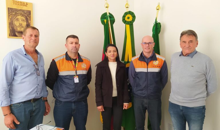 A Administração Municipal recebeu nessa segunda-feira (07), a visita da equipe da Defesa Civil de Santa Cruz do Sul. Estiveram no município, o Tenente-Coronel Joel e o 1º Sargento Aguiar. Eles foram recepcionados pelo prefeito Valmor Mattana, pelo secretário de Obras e coordenador da Defesa Civil Municipal, Gildo Puntel, e pela servidora Morgana dos Anjos.