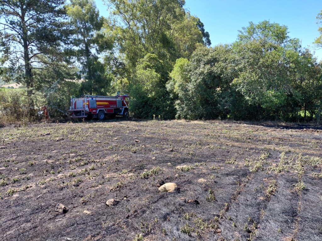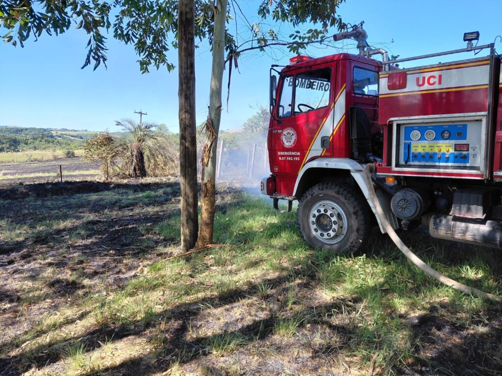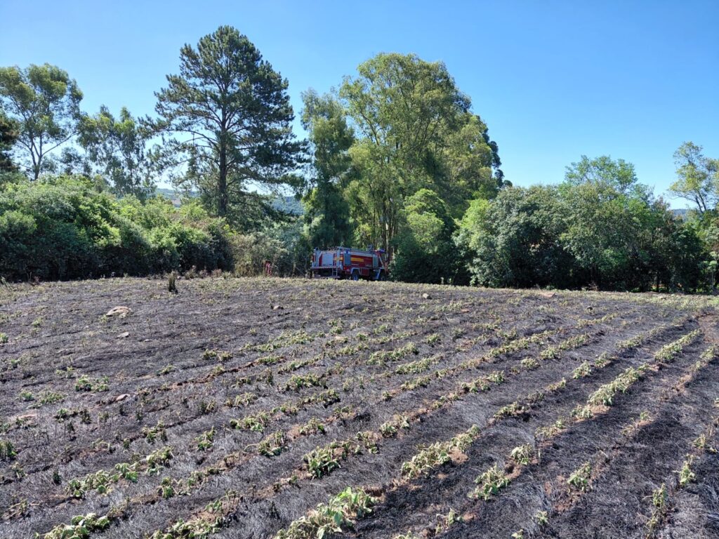 Ao chegar ao local, a equipe constatou que vizinhos já haviam conseguido controlar as chamas na lavoura. Mesmo assim, foi realizado o trabalho de rescaldo, com a extinção de focos remanescentes, principalmente nas beiradas de cerca que fazem divisa com a propriedade e no barranco às margens da estrada, evitando que o fogo se alastrasse novamente.