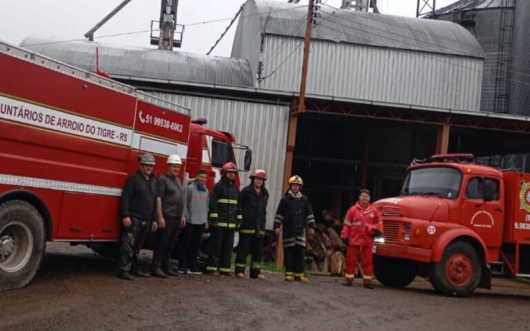 Os Bombeiros Voluntários de Arroio do Tigre foram acionados, por volta das 10 horas da manhã desse domingo (27), para combater um incêndio num secador de grãos na unidade local da Cotriel.