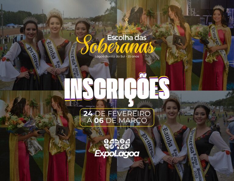 A escolha das Soberanas do Jubileu de Prata do município, que comemora 25 anos de administração pública, será dia 11 de abril. As entidades interessadas em apresentar candidatas podem fazer as inscrições até esta quinta-feira (06). A Escolha de Soberanas faz parte da programação da Festa da Lagoa 2025 e 3ª ExpoLagoa, comemorações alusivas ao Jubileu de Prata de Lagoa Bonita do Sul. A expectativa da administração municipal é de que haja a participação de todas as entidades do município.